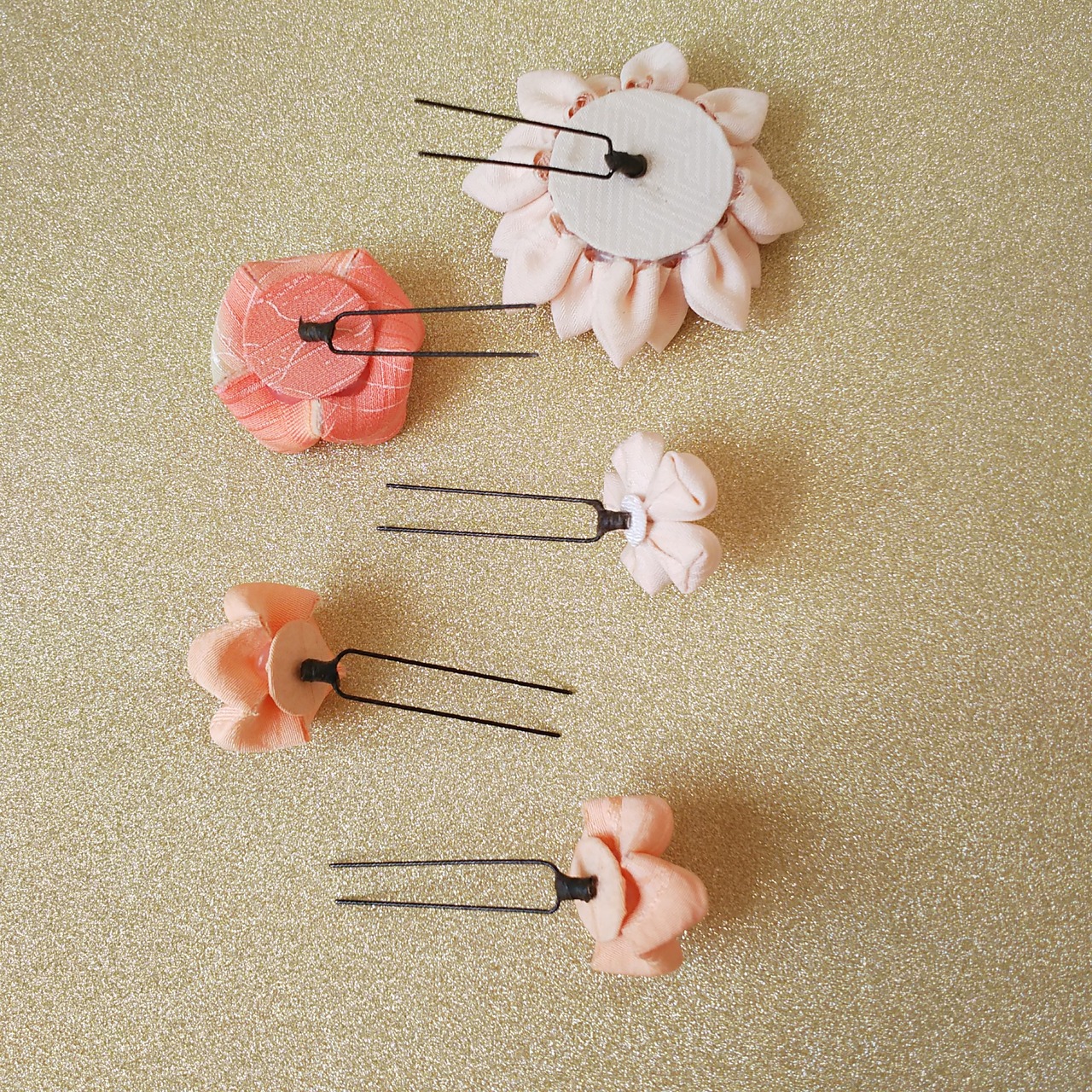 自由につけれるように、小花は1つずつUピンに仕立てました。