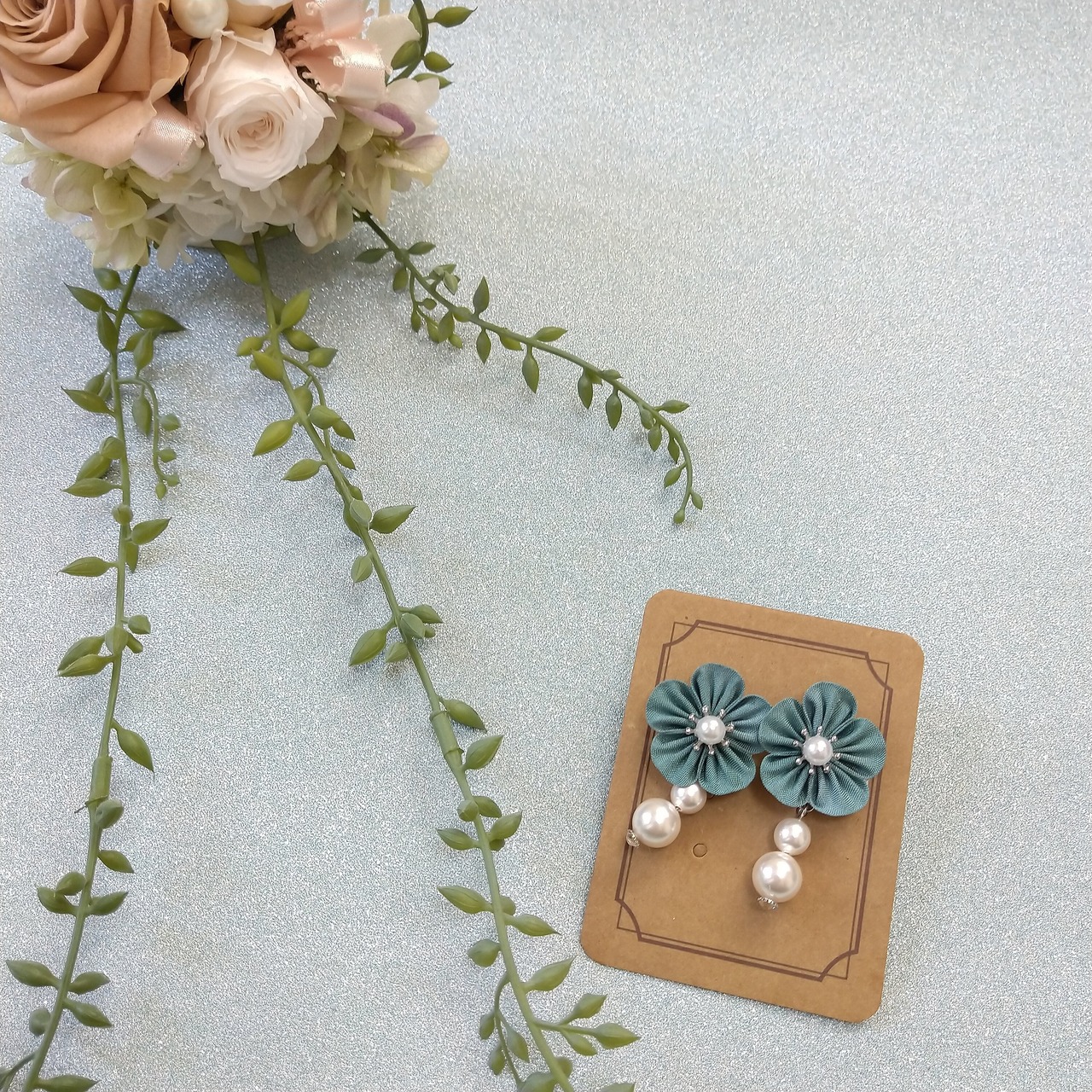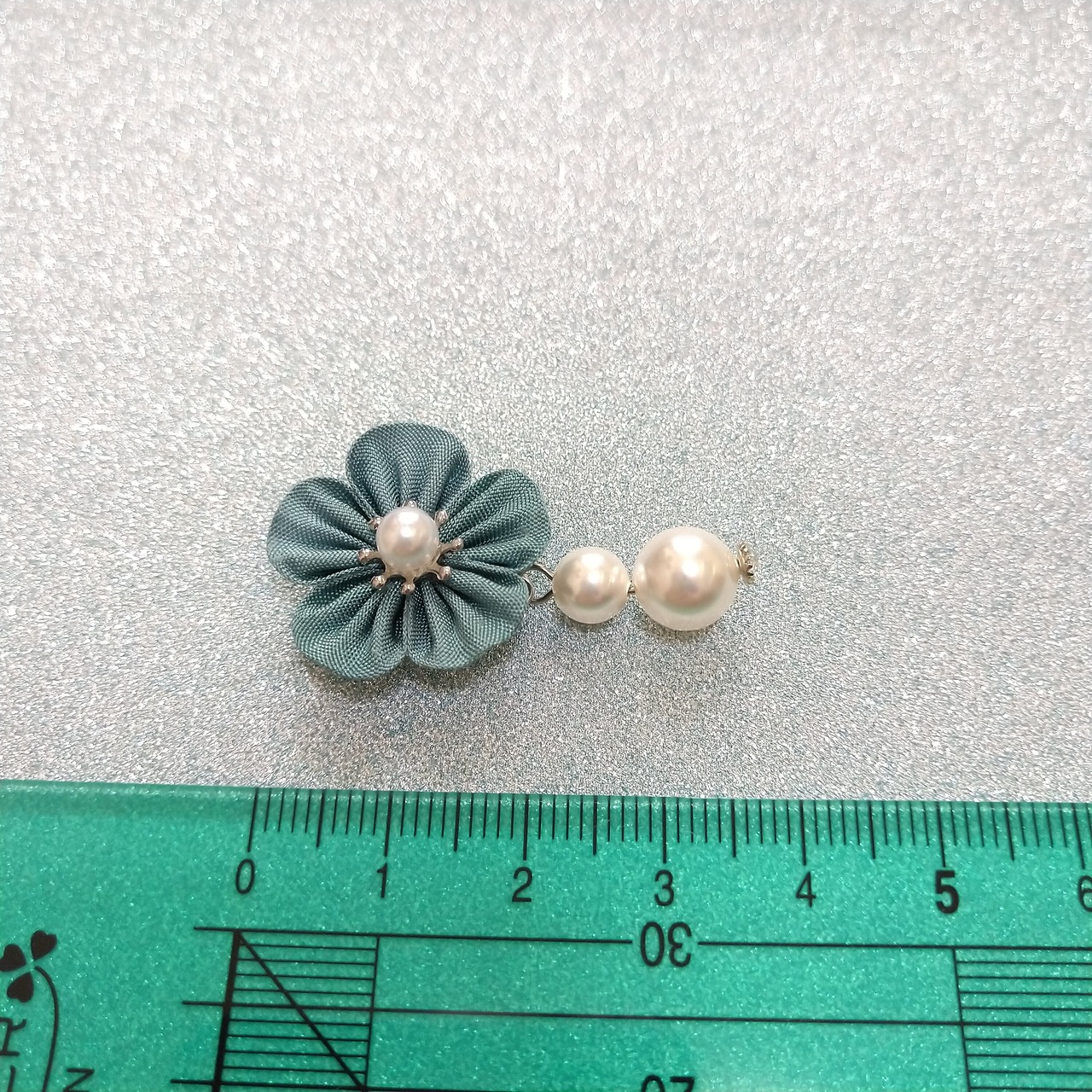 くすんだ青のひだよせつまみのイヤリング、ピアス